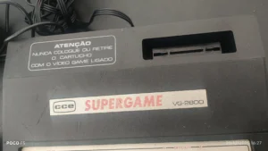 CONSOLE CHEGOU DE UM LOTE DE ITENS, CHEGOU AS NAO TENHO JOGOS PARA TESTAR E SABER SE ESTÁ LIGANDO, POIS ELE NAO CONTEM LUZ QUE INDICA SE ESTA LIGADO OU NAO, COMPRE SABENDO QUE NAO CONSEGUI TESTAR, OLHE BEM AS FOTOS E VEJA QUE ESTA MOSTRANDO TODOS OS DETALHES DELE OK, ESTEJA CIENTE. UM DOS CONTOLES ESTA ABERTO, ENTAO COLOQUEI UMA LIGA PARA SEGURAR, O OUTRO ESTA NORMAL. FONTE ORIGINAL E CABO AV EMBUTIDO NO GAME. OBS: NAO ACEITO RECLAMOÇOES POSTERIORES. (VAI COMO NO ESTADO)