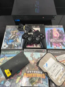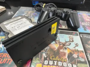 ASSISTA O VÍDEO DESTE CONSOLE NA GALERIA DE IMÁGENS 😲PLAYSTATION 2 FAT DESTRAVADO, LENDO JOGOS DE PS1 E PS2. ACOMPANHA MODEM E HD SATA DE 120GB. ACREDITO QUE TENHA JOGOS INSTALADOS, PORÉM NÃO LEMBRO COMO FAZER PARA CARREGÁ-LOS. INCLUI TAMBÉM 7 JOGOS FÍSICOS ALTERNATIVOS E UM CONTROLE ORIGINA😯