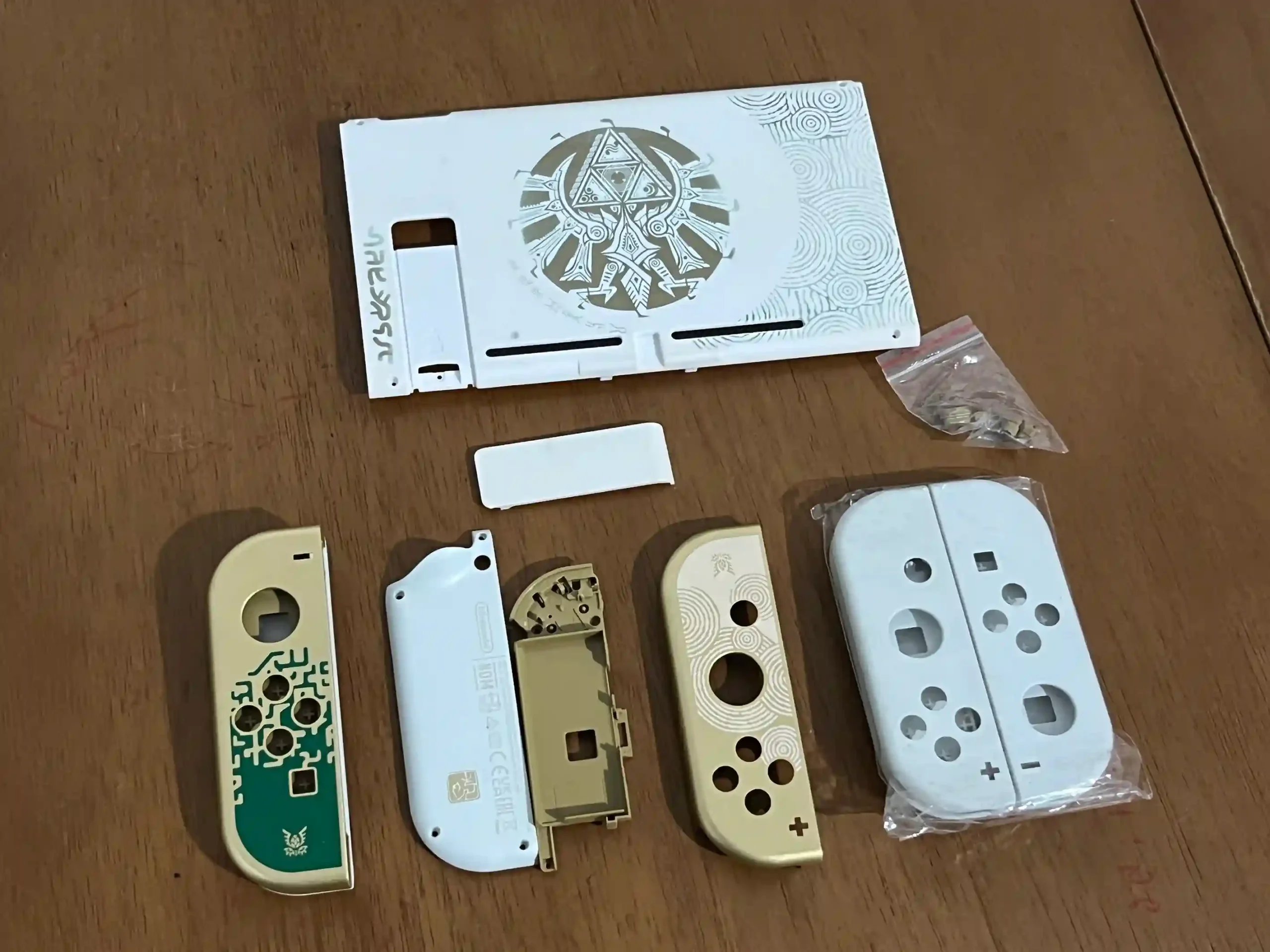 🥳 1 kit carcaça Switch V1 ED Zelda Tears of The Kingdom. 1 Traseira e 1 par de JoyCon (não serve para Switch Oled)